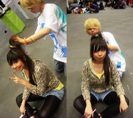 me having my hair done by samuel heh.